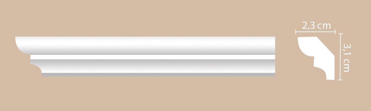 Плинтус имеет размеры 31х23х2000 мм, что позволяет использовать его для различных типов потолков и помещений.