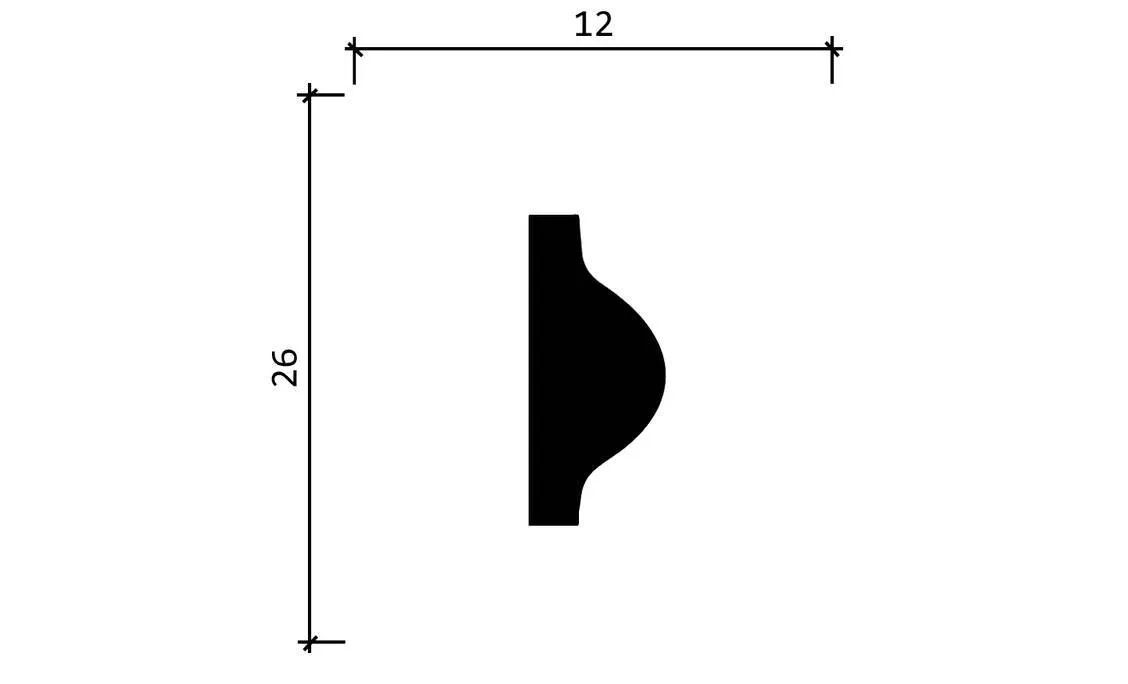 Молдинг Декор Дизайн DD10 имеет длину 2 метра, что позволяет использовать его для оформления больших поверхностей. Высота молдинга составляет 2,6 см, а глубина - 1,2 см.