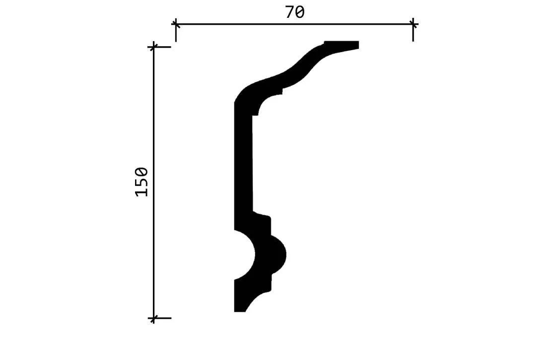 Плинтус имеет высоту 150 мм и длину 2000 мм, что позволяет использовать его для различных типов потолков и помещений.