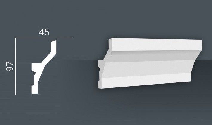 Размеры карниза составляют 97.0 см в высоту, 45.0 см в ширину и 2000.0 см в длину. Это позволяет использовать его для оформления больших и малых помещений, а также для создания разнообразных дизайнерских решений.