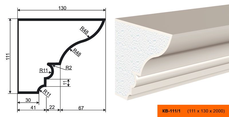 Lepninaplast КВ-111/1 - это фасадный карниз, изготовленный из пенополистирола ПСБ-С-35. Этот материал отличается высокой прочностью и долговечностью, что гарантирует долгий срок службы изделия.