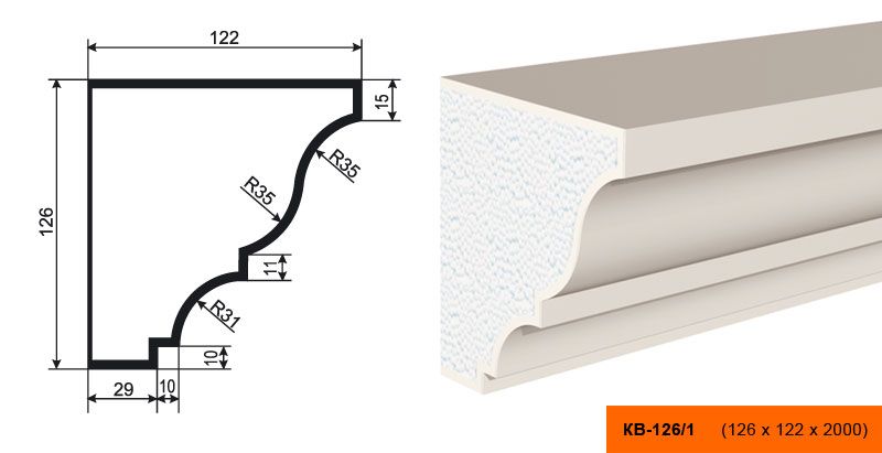 Lepninaplast КВ-126/1 - это фасадный карниз из пенополистирола, который станет отличным дополнением к вашему интерьеру.