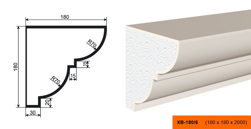 Lepninaplast КВ-180/6 - это фасадный карниз из пенополистирола, который станет отличным дополнением к вашему интерьеру.