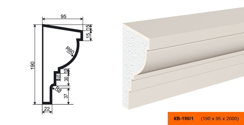 Lepninaplast КВ-190/1 - это фасадный карниз, выполненный из пенополистирола. Этот материал отличается высокой прочностью и долговечностью, что гарантирует долгий срок службы изделия.