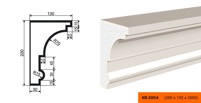Lepninaplast КВ-200/4 - это фасадный карниз, изготовленный из пенополистирола. Этот материал обладает высокой прочностью и долговечностью, что гарантирует долгий срок службы изделия.