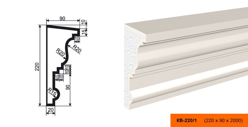 Lepninaplast КВ-220/1 - это фасадный карниз из пенополистирола, который станет отличным дополнением к вашему интерьеру.