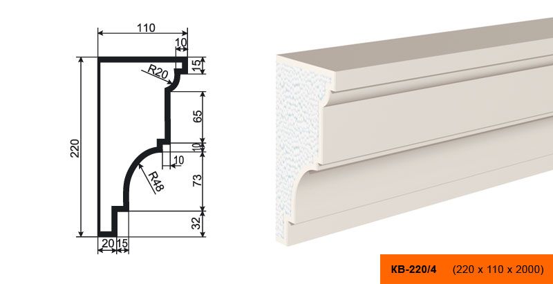 Lepninaplast КВ-220/4 - это фасадный карниз из пенополистирола, который станет отличным дополнением к вашему интерьеру.
