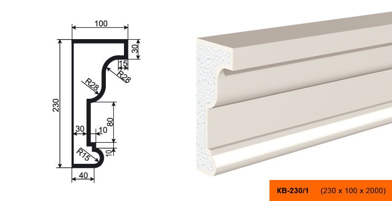 Lepninaplast КВ-230/1 - это фасадный карниз из пенополистирола, который станет отличным дополнением к вашему интерьеру.
