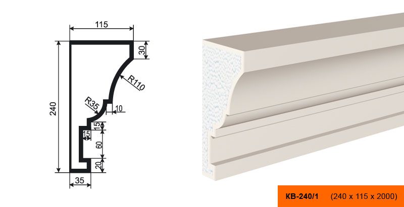 Lepninaplast КВ-240/1 - это фасадный карниз из пенополистирола, который станет отличным дополнением к вашему интерьеру.