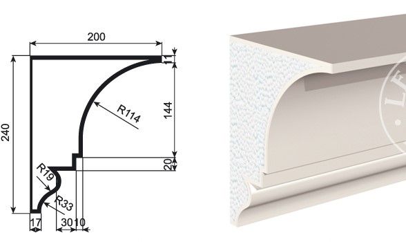 Lepninaplast КВ-240/3 - это фасадный карниз, выполненный из пенополистирола. Этот материал отличается высокой прочностью и долговечностью, что гарантирует долгий срок службы изделия.
