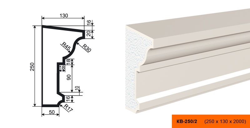 Lepninaplast КВ-250/2 - это фасадный карниз из пенополистирола, который станет отличным дополнением к вашему интерьеру.