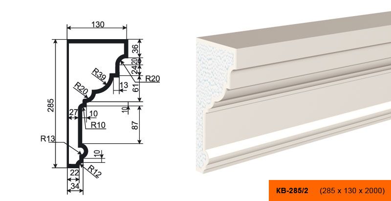 Lepninaplast КВ-285/2 - это фасадный карниз из пенополистирола, который станет отличным дополнением к вашему интерьеру.
