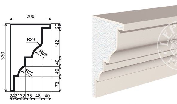 Lepninaplast КВ-330/1 - это фасадный карниз из пенополистирола, который станет отличным дополнением к вашему интерьеру.