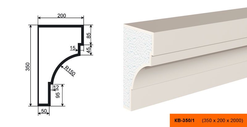 Lepninaplast КВ-350/1 - фасадный карниз из пенополистирола, который станет отличным решением для оформления вашего дома или офиса.