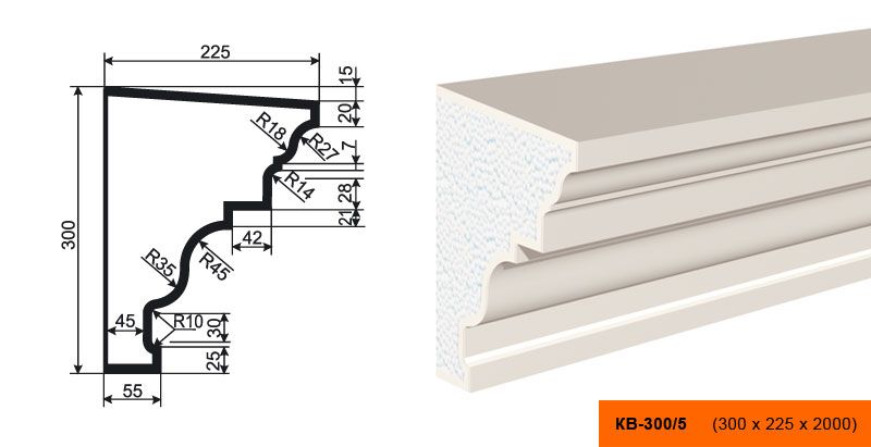 Lepninaplast КВ-300/5 - это фасадный карниз из пенополистирола, который станет отличным дополнением к вашему интерьеру.