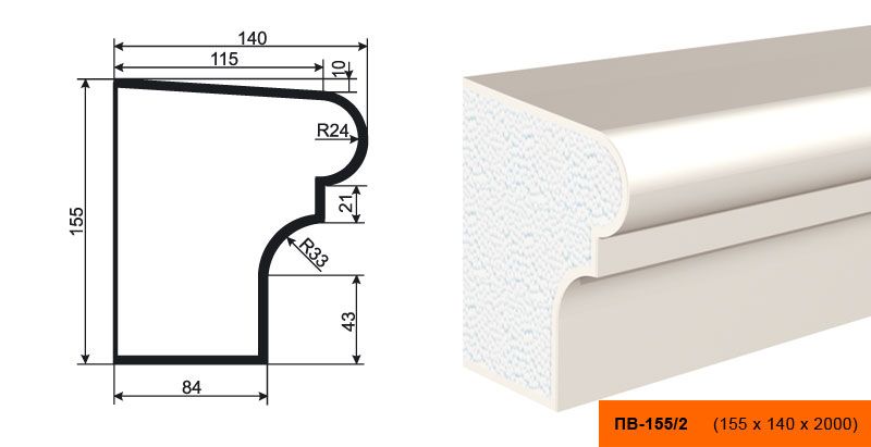 Lepninaplast ПВ-155/2 изготовлен из пенополистирола ПСБ-С-35, что гарантирует его прочность и долговечность. Размеры подоконника составляют 15,5 см в высоту, 14 см в ширину и 200 см в длину, что позволяет использовать его в различных помещениях.