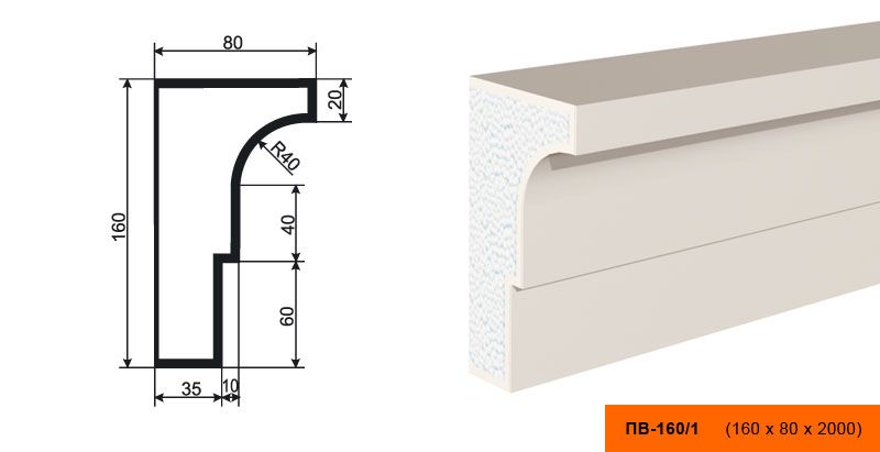 Lepninaplast ПВ-160/1 - это фасадный подоконник из пенополистирола, который станет отличным дополнением к вашему интерьеру.
