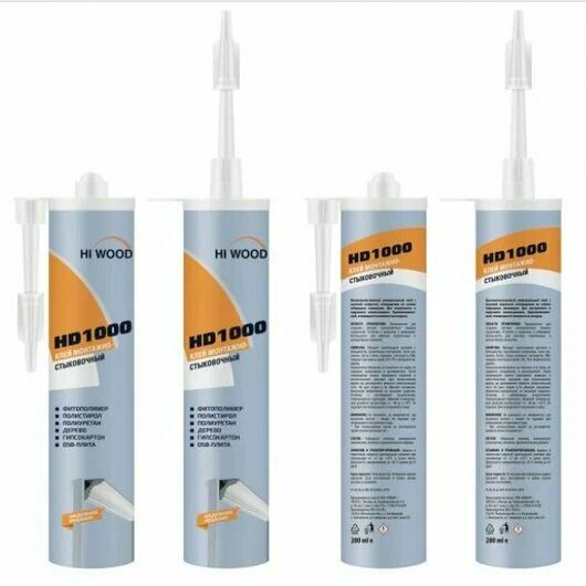 Монтажно-стыковочный клей сильной фиксации HI WOOD HD1000. Объем 280 мл, расход на 7-8 п.м.