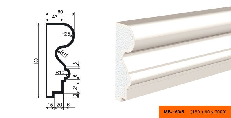 Lepninaplast МВ-160/5 - это фасадный молдинг из пенополистирола, который станет отличным дополнением к вашему интерьеру.