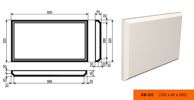 Боссаж имеет размеры 600 мм в длину, 40 мм в ширину и 320 мм в высоту. Это позволяет использовать его для оформления различных элементов фасада, таких как углы, проемы и другие участки.