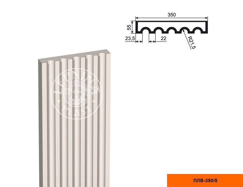 Рифленое тело фасадной пилястры из пенополистирола с покрытием LEPNINAPLAST-FASAD (Лепнинапласт-фасад) ПЛВ-350/5 - это высококачественный элемент декора, который придаст вашему интерьеру неповторимый стиль и изысканность.