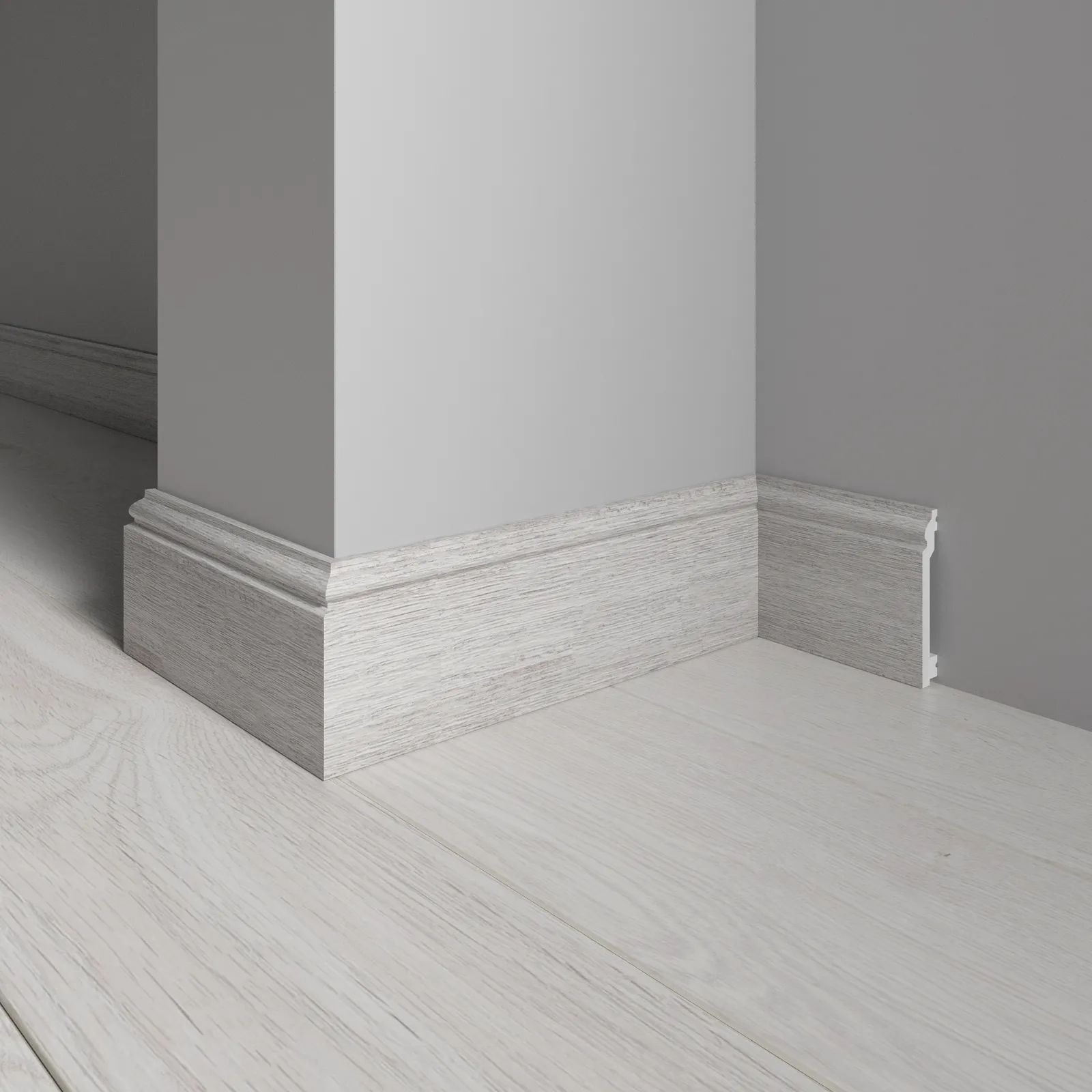 Поверхность плинтуса матовая, гладкая и без рисунка, что придает ему элегантный и современный вид.