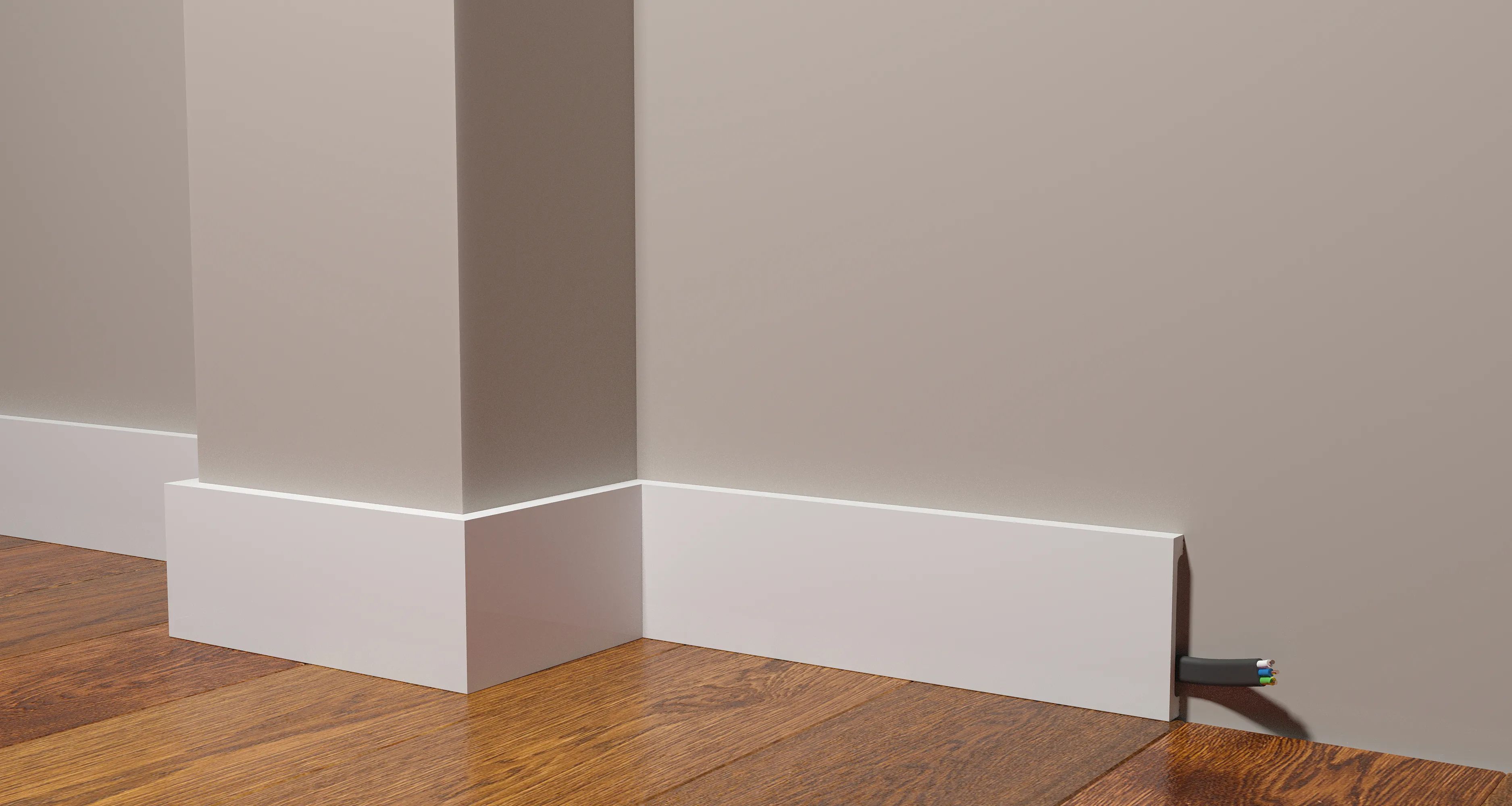 Особенностью данного плинтуса является наличие кабель-канала, что позволяет удобно и безопасно провести провода и кабели.