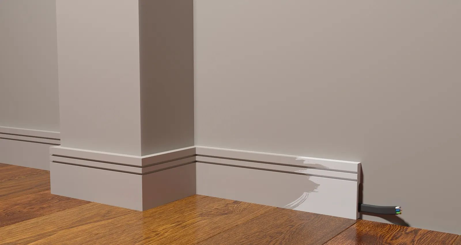 Материал плинтуса - дюрополимер, который отличается высокой прочностью и долговечностью. Это гарантирует долгий срок службы и сохранение первоначального вида изделия.