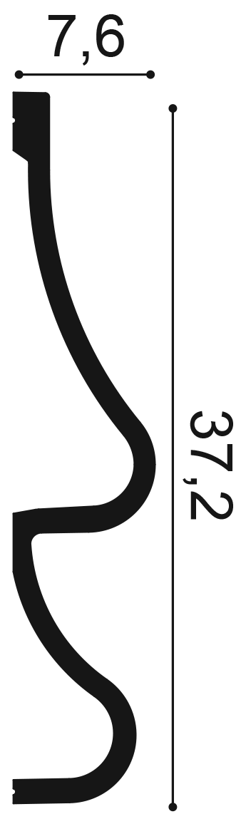 Размеры молдинга составляют 2 метра в длину, 37.2 мм в ширину и 7.6 мм в толщину.