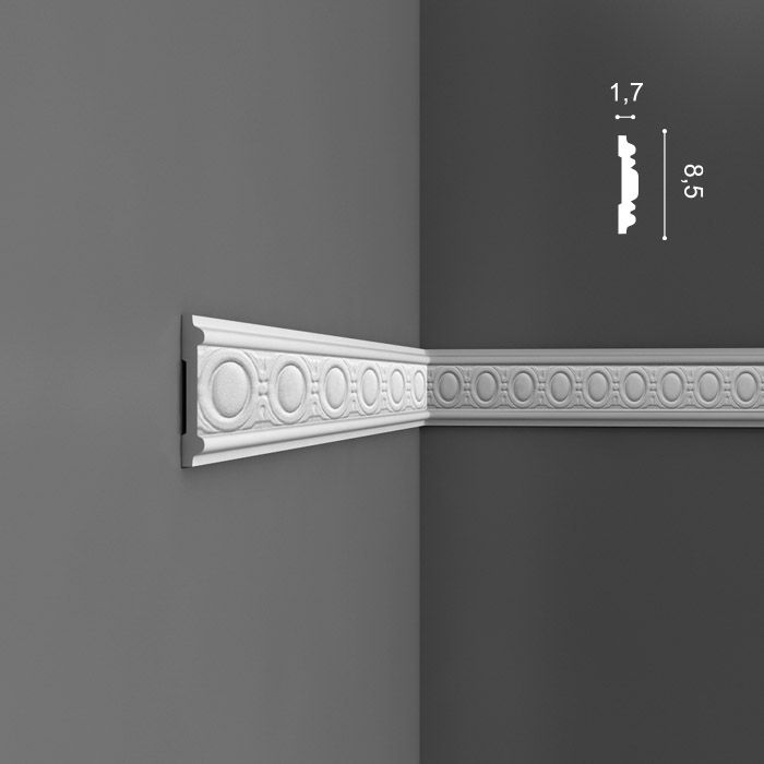 Молдинг имеет ширину 8.5 см, длину 200 см и толщину 1.7 см.