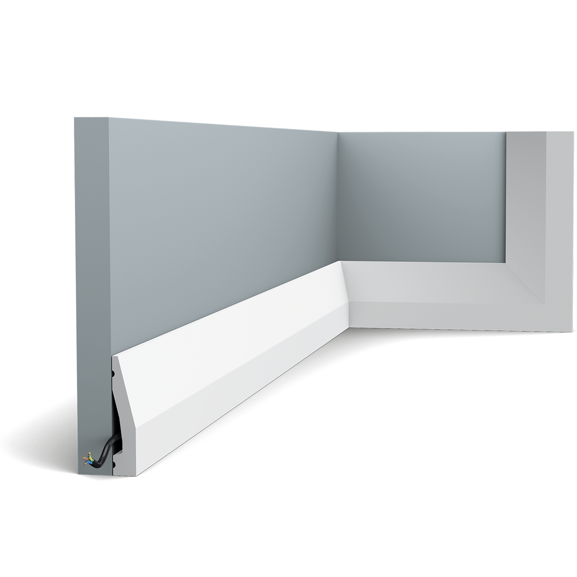 Особенностью данного плинтуса является наличие кабель-канала, что позволяет удобно и безопасно проводить провода и кабели.
