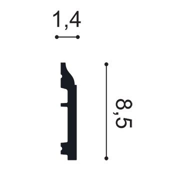 Плинтус имеет длину 2 метра, ширину 14 мм и высоту 85мм, что позволяет подобрать оптимальный размер для любого помещения.